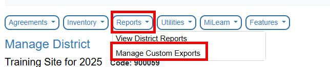 Navigate to Reports >> Manage Custom Exports