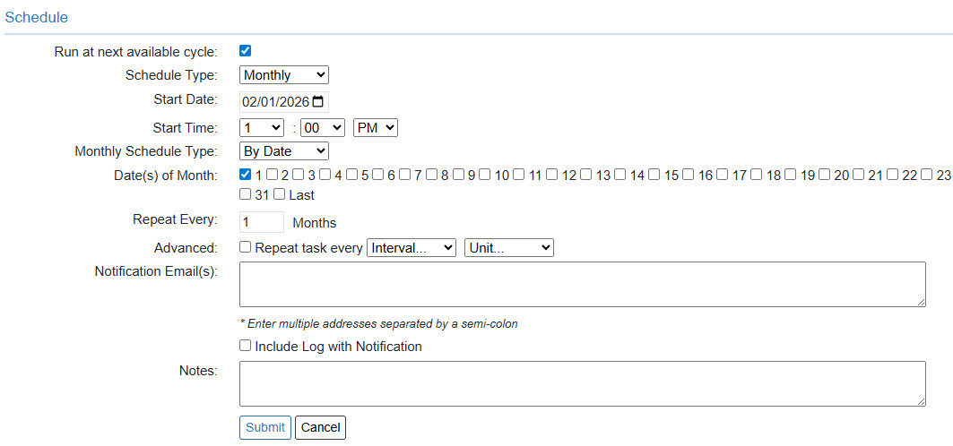 Schedule Type = Monthly