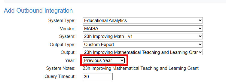 Previous Year - Add Outbound Integration for Previous Year